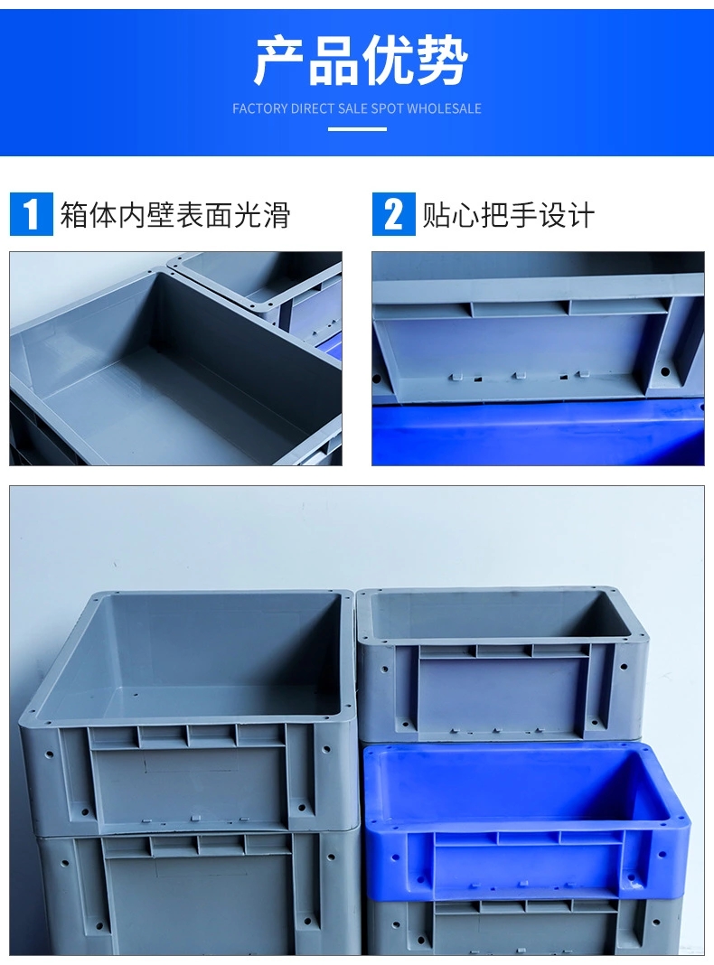 斜插式物流箱:空箱时可套叠堆放,减少仓储体积,需配套箱盖实现堆叠。